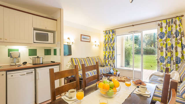 Από pierre & vacances residence le domaine du golf de pinsolle. La résidence est située en bordure du golf près du lac d'eau salée et des étangs, au c?ur de la forêt de pins. Situé en rdc, terrasse extérieure exposée sud avec accès sur le parc, en bordure un chemin piéton vous mène en 15min au lac marin de soustons/vieux boucau (base de loisirs voile) ou a la plage.